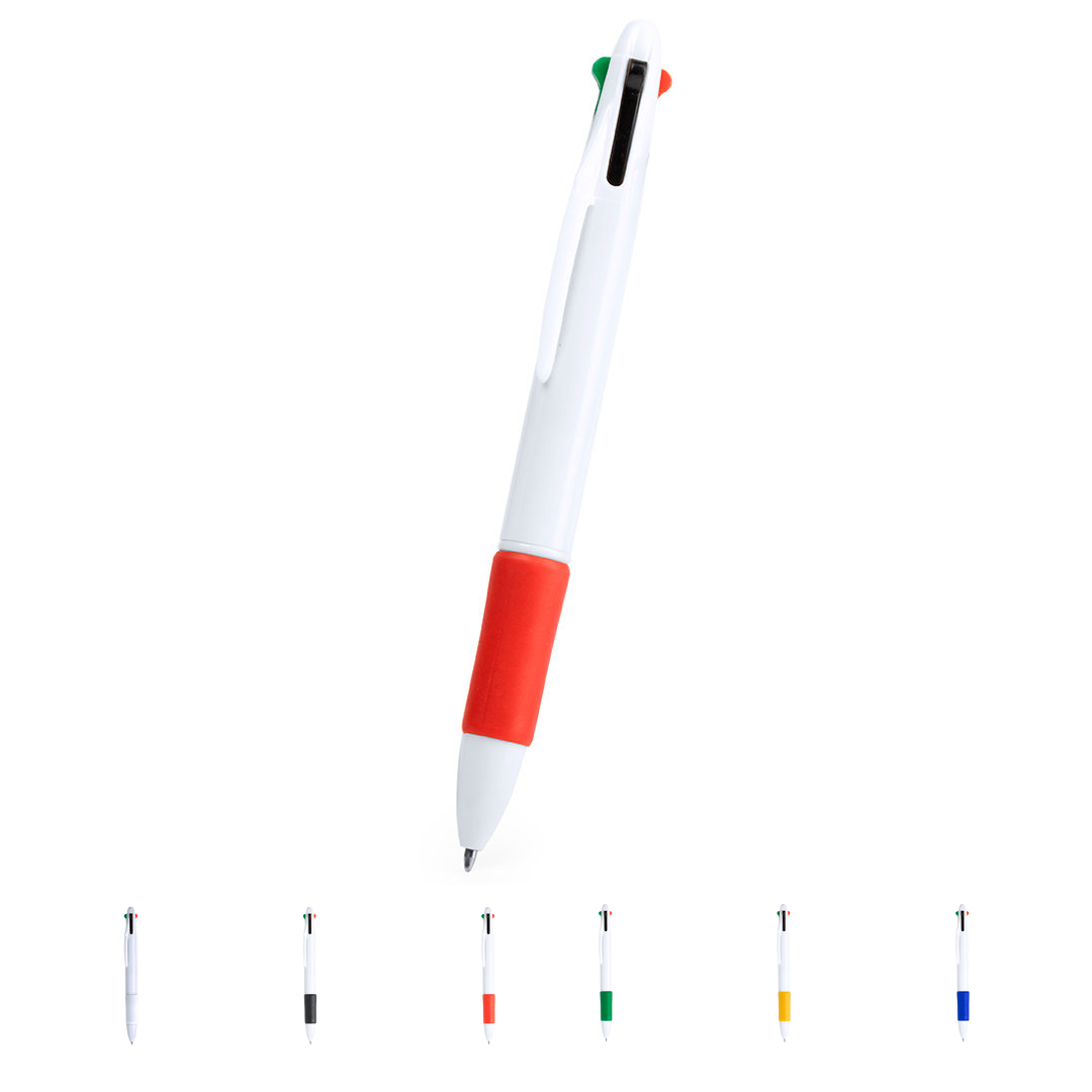 • Bolígrafo 4 en 1 de mecanismo pulsador retráctil, de clásico diseño y cuerpo de suave acabado sólido en color blanco.