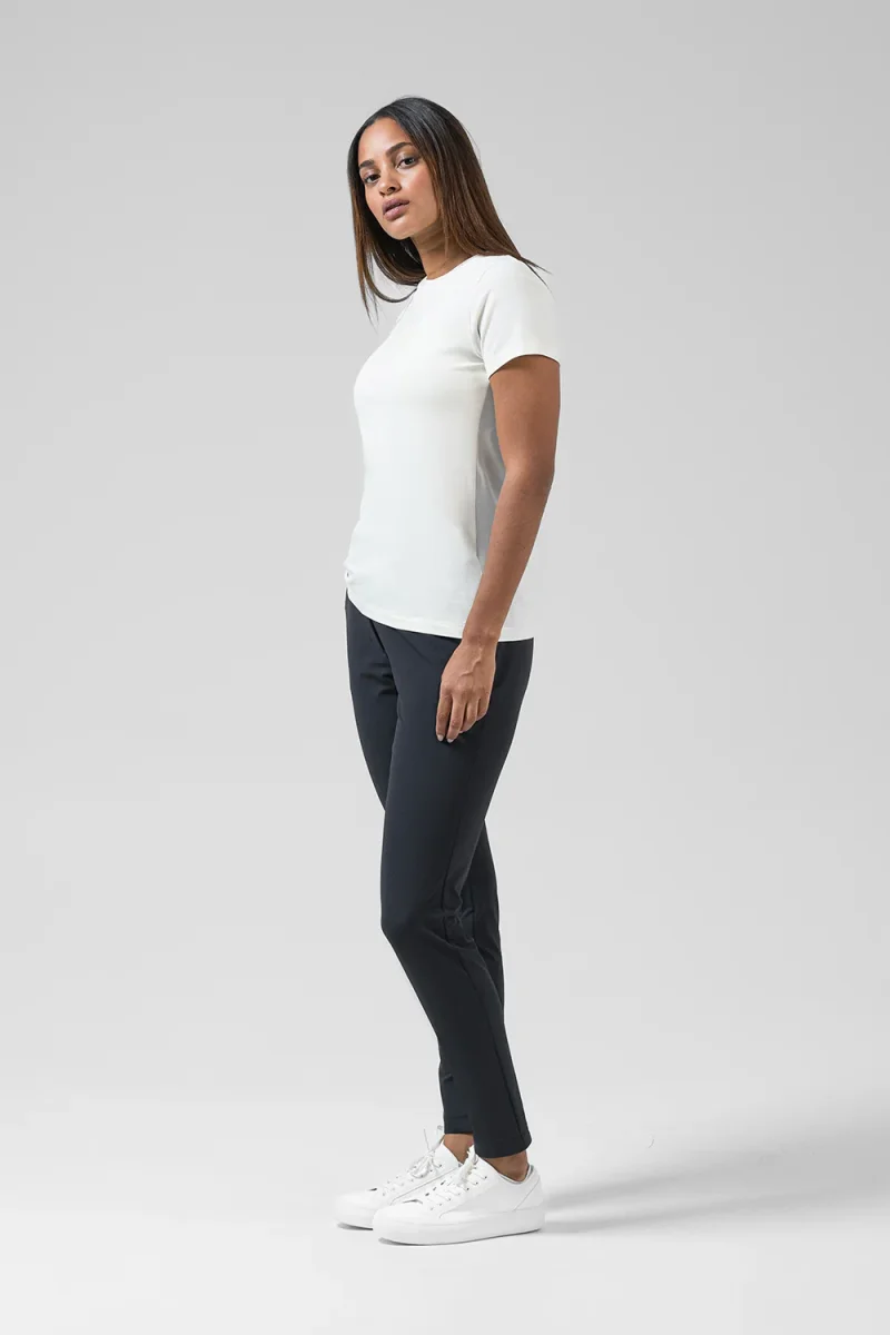 Experimenta la versatilidad y comodidad de esta camiseta de algodón. Con su cuello redondo y su diseño entallado, es perfecta para cualquier ocasión, tanto para conjuntos informales como más sofisticados.