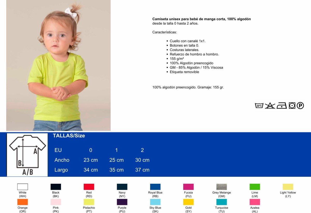 • 100% algodón, tallas desde 0 hasta 5XL