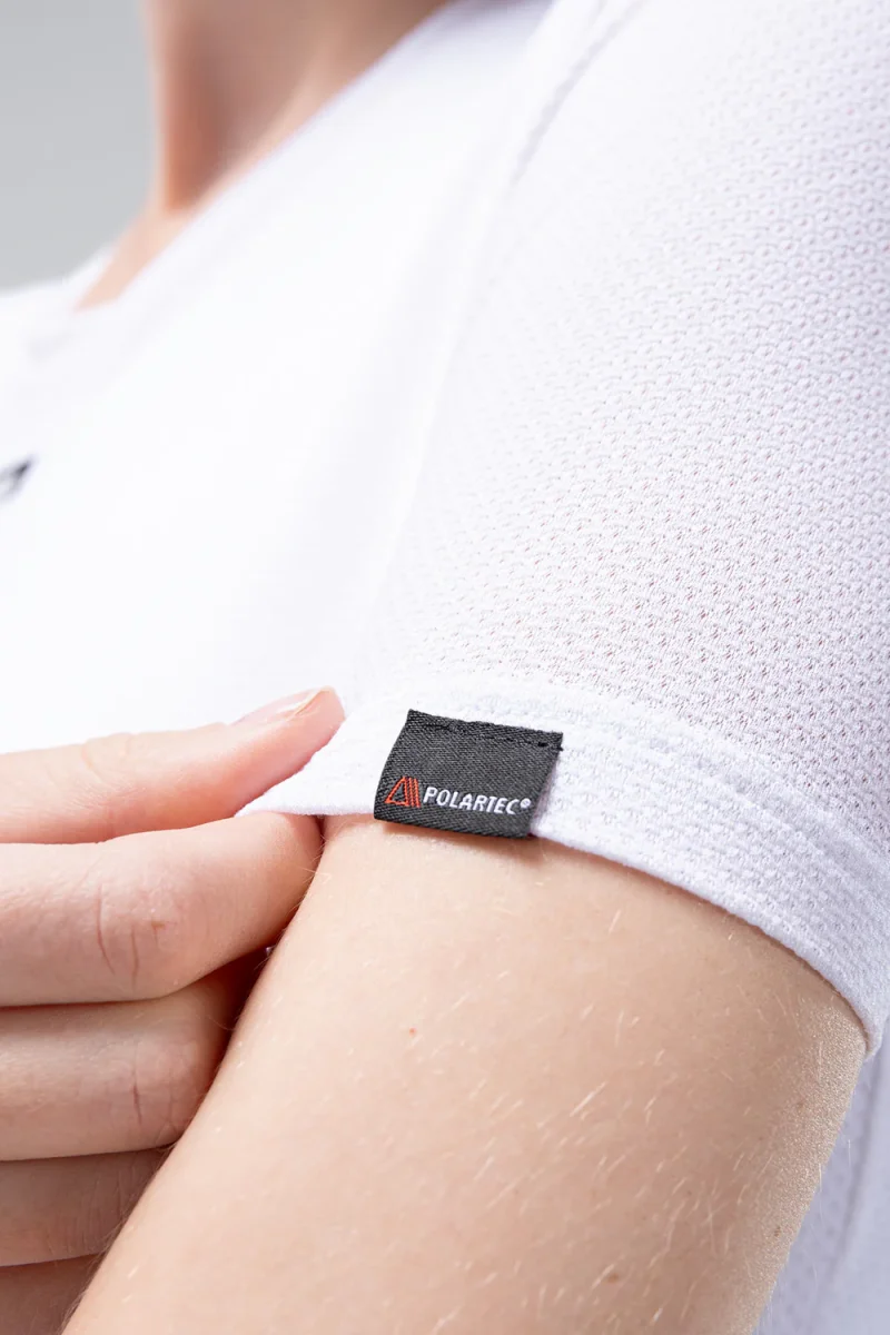 El tejido Polartec® Delta™ es una auténtica revolución en la transpiración y regulación de temperatura, funcionando de manera más eficiente que los tejidos segunda piel. Gracias a una estructura hexagonal que eleva los puntos de contacto con la piel, se aumenta el flujo de aire interior, con una dispersión más rápida de la humedad sobre su superficie y una menor adherencia.