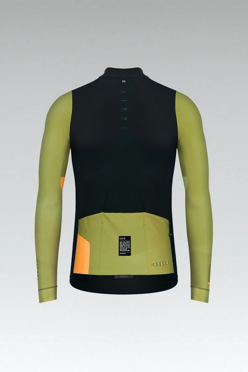 - Mangas en tejido muy ligero y flexible con puños aerodinámicos y corte láser.