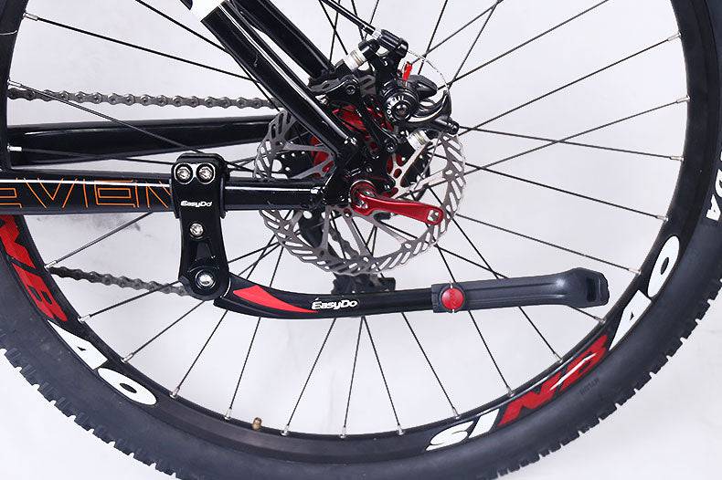 Cuenta con un botón de presión para ajustar fácilmente la altura del soporte, no necesita el uso de herramientas; el rango de altura ajustable va de 34-41cm y lo puedes usar en bicicletas con ruedas de tamaño de 24-29 pulg. Construido con aleación de aluminio extra gruesa y plástico ABS.