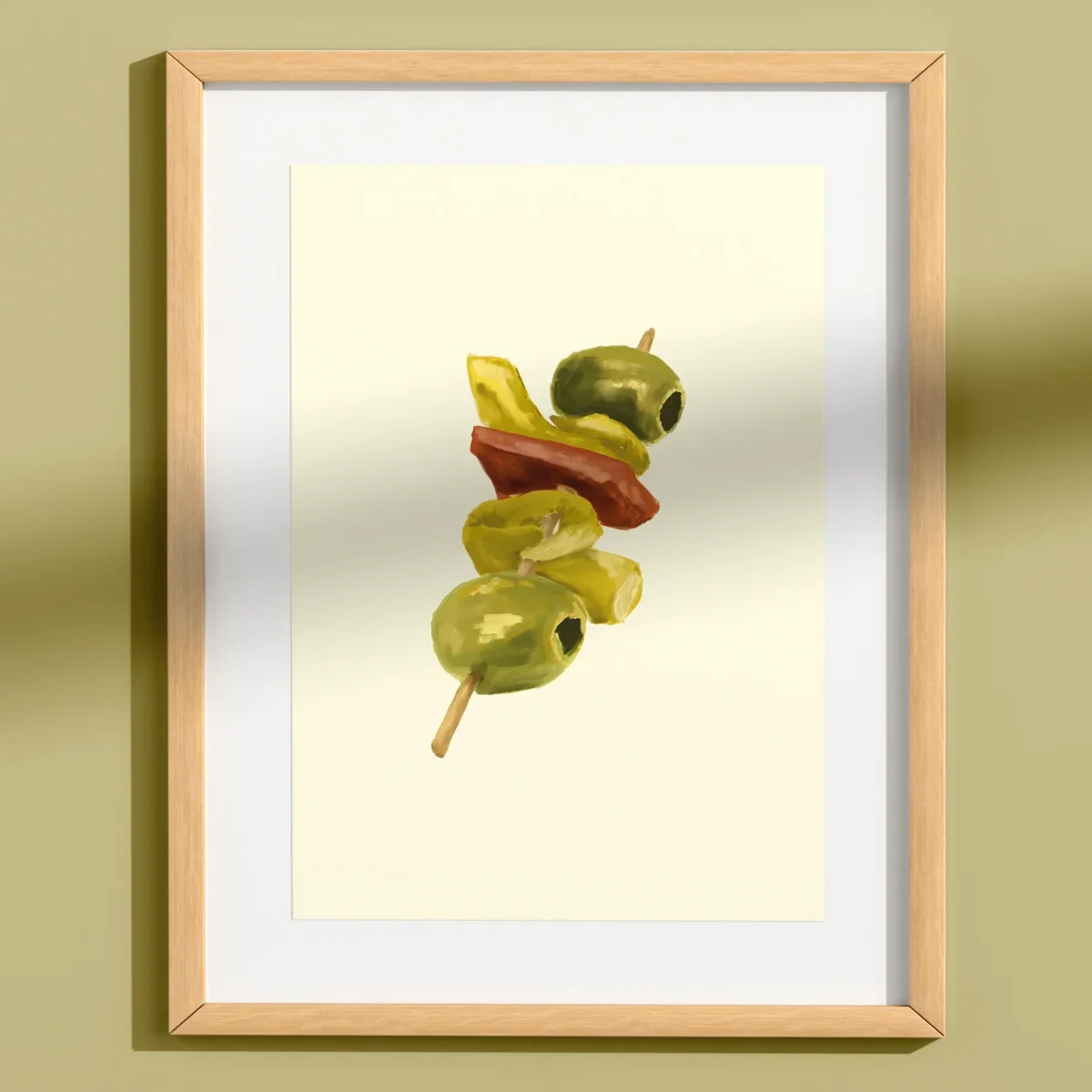 Print para que te salive la boca. Un pincho con aceitunas, guindillitas y pimientos encurtidos que es el mejor acompañamiento para un vermú y una terraza de verano en el Mediterráneo. ¡Otra ronda!